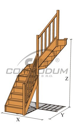 HARMONIE 1/4 gewendelte Holztreppe, h.2720 +30mmDiese feste Treppe wird dank den modernsten CNC Technologien hergestellt. Sie wird aus massiver Fichte, massiver Buche, mit oder ohne Setzstufen angefertigt. Sie wird im demontierten Zustand geliefert, zur Beize und Lackierung bereit. Die Treppe kann entweder linksläufig oder rechtsläufig gekrümmt werden. Konstruktionshöhe 2720 mm lässt sich durch Hinzufügen einer selbstständigen Auftrittsstufe oder durch Wangenreduzierung anpassen. HARMONIE mitte Brechung Holztreppe 2720 Höhe/Breite der Stufe: 209/188 Steigung 48° 6 ' Brechung: links/rechts |